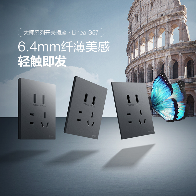 ¶þÈý¼«+¶þλUSB²å×ù(Ä«ÔÆ»Ò)2.4A*5V